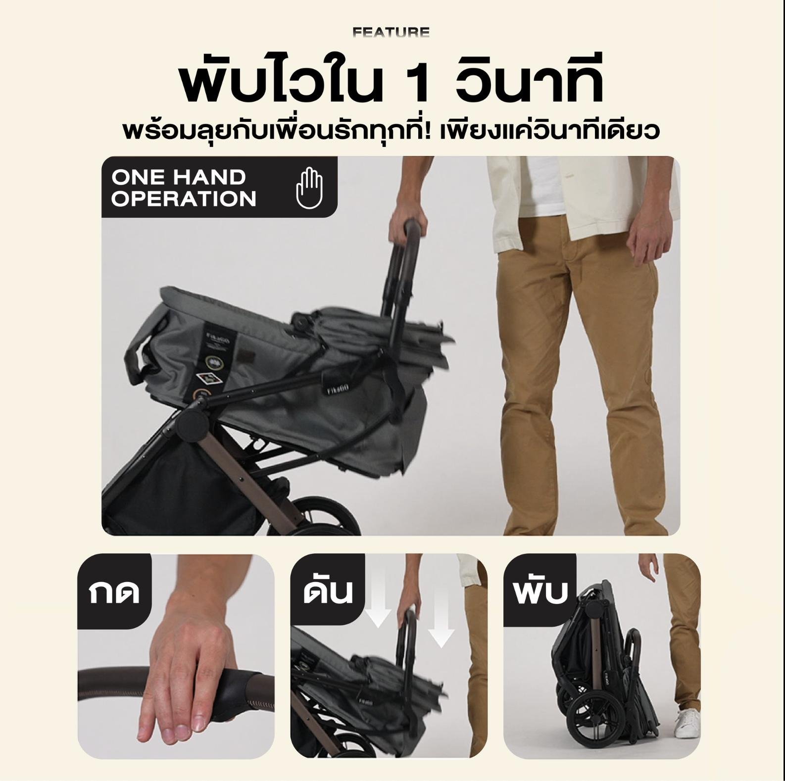 - พับเก็บง่ายภายใน 1 วินาที พับขึ้นรถ/เก็บเข้าบ้านได้อย่างรวดเร็ว